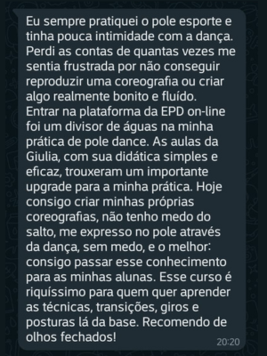 Veja o que dizem as integrantes da plataforma ESCOLA DE POLE DANCE: